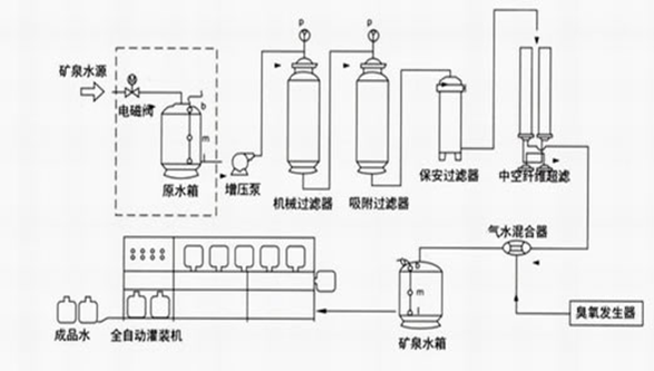 礦泉水廠生產工藝流程圖: